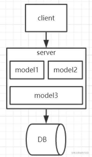 在单体架构里面,客户端可能是cs的,也可能是bs的,服务里面包括所有的模型。所有的请求都包括在server里面,数据库只有一个。实现这个架构更多的是sql语句写好,业务更多的是通过sql来实现的。那个时候hibernate还没有,也没有ORM框架,用这jdbc写的挺爽,当model越来越多的时候,开发效率变的很低,这个项目可能几百个模块,光构建就要花半个小时,我记得公司原来有个项目,那时候才大学毕业那个项目名字叫98系统,就是98年开发完毕的,构建需要半个小时,那时候电脑内存才2g,用的是奔4cpu。其中一个模块报错,需要重新构建一次,都是全部写完看了几遍才敢测试,因为构建太慢了。