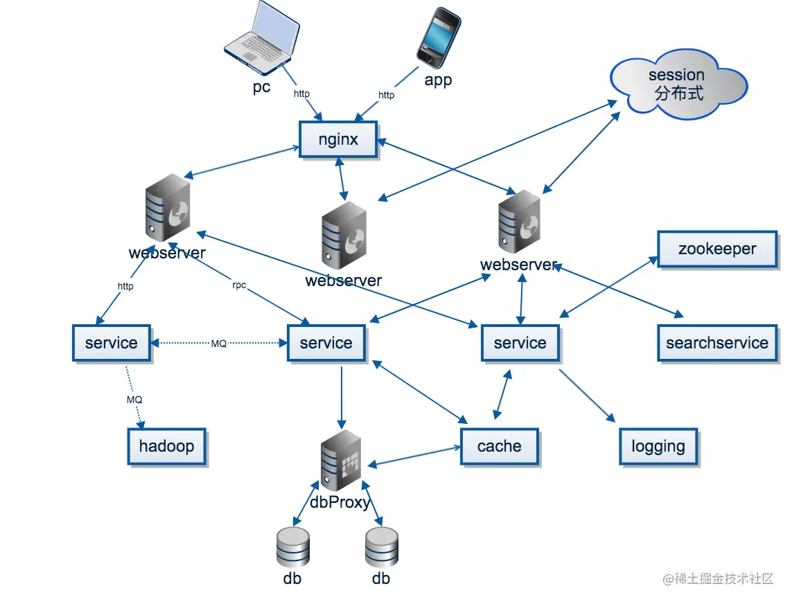 应用程序,静态文件,数据库全部都在一台机器上。那个年代写个网站10万块,那个年代程序员不会说自己去搬砖,程序员还是一份体面的工作,那个时候马云还是推销他的阿里巴巴,马化腾还是写他的qq,那个时候的房价郑州估计才300多一平,股市只有1700多点。到现在一切都变了。