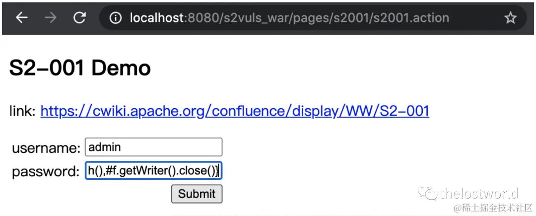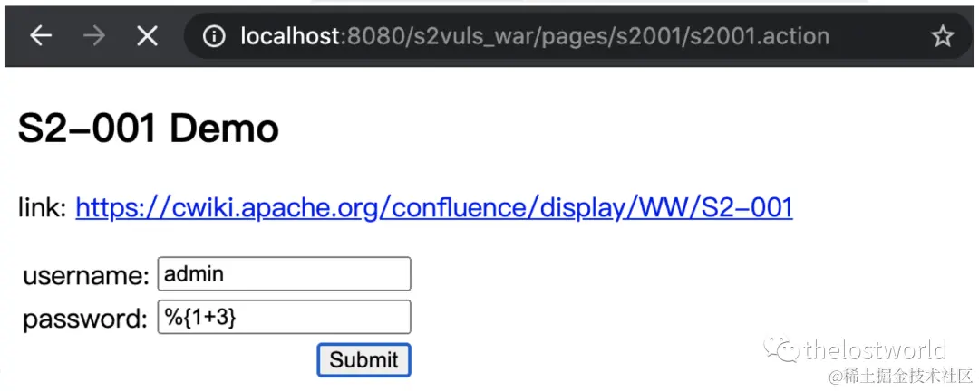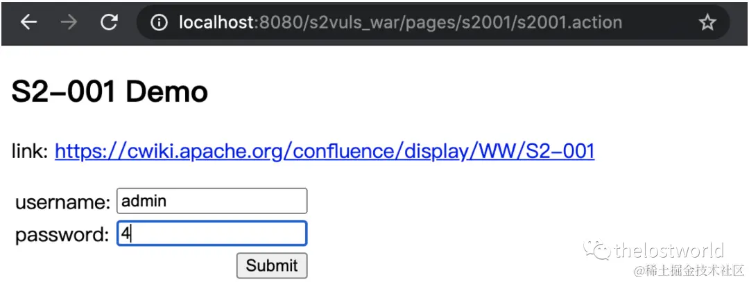 本次操作只是访问http://localhost:8080/s2vuls_war/pages/s2001/index.jsp获取只有