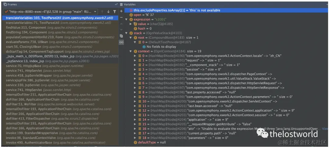 逻辑运行完之后,struts2将返回响应,并重新渲染jsp。问题就出在重新渲染时,struts2对ognl表达式进行了二次解析,导致攻击者输入的恶意表达式被执行。