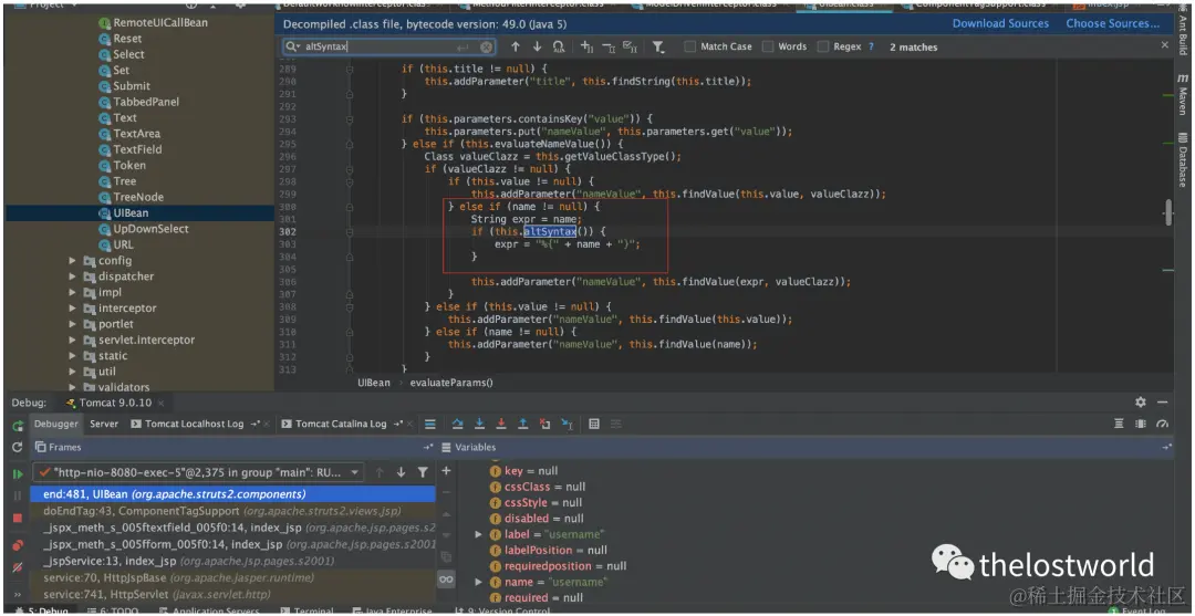 altSyntax,会将标签name属性的值(这里是username),用%{}包裹,进行进一步解析。