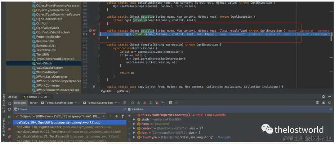 ognl表达式传入了OgnlUtil.getValue并执行