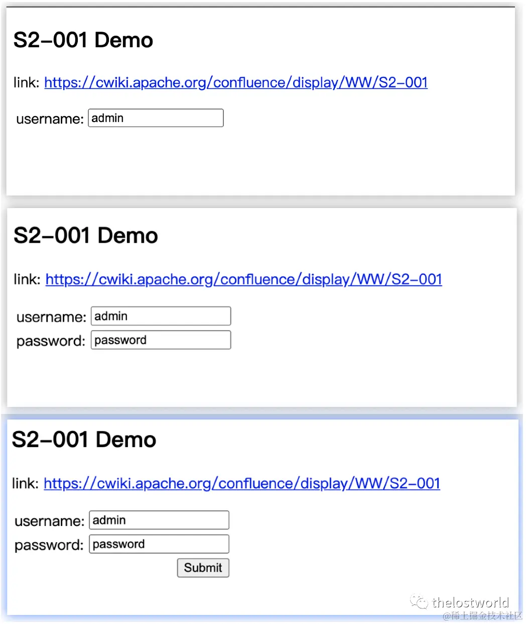 <%@ page language="java" contentType="text/html; charset=UTF-8" pageEncoding="UTF-8"%><%@ taglib prefix="s" uri="/struts-tags" %><!DOCTYPE html PUBLIC "-//W3C//DTD HTML 4.01 Transitional//EN" "http://www.w3.org/TR/html4/loose.dtd"><html><head> <meta http-equiv="Content-Type" content="text/html; charset=UTF-8"> <title>S2-001</title></head><body><h2>S2-001 Demo</h2><p>link: <a href="https://cwiki.apache.org/confluence/display/WW/S2-001">https://cwiki.apache.org/confluence/display/WW/S2-001</a></p><s:form action="s2001"> <s:textfield name="username" label="username" /> <s:textfield name="password" label="password" /> <s:submit></s:submit></s:form></body></html>