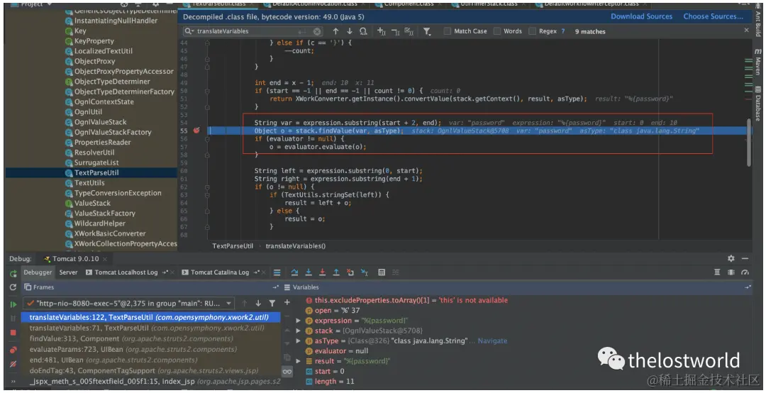 返回值进行一系列处理后,最后又赋值给expression,接着会再次进入translateVariables进行解析,然后进入下一次while循环