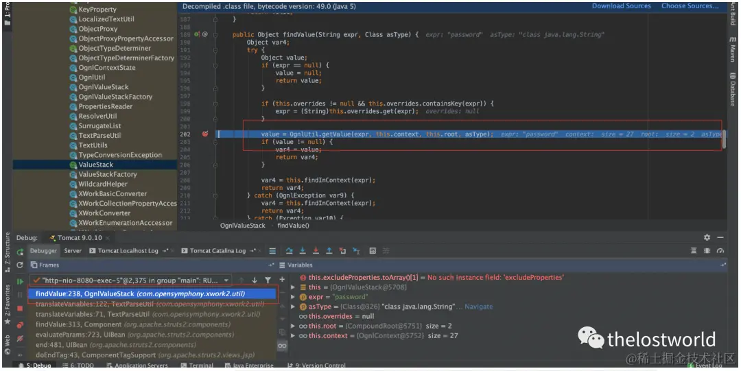 stack.findValue(var, asType);,这里的stack为OgnlValueStack,它是ValueStack的实现类。
