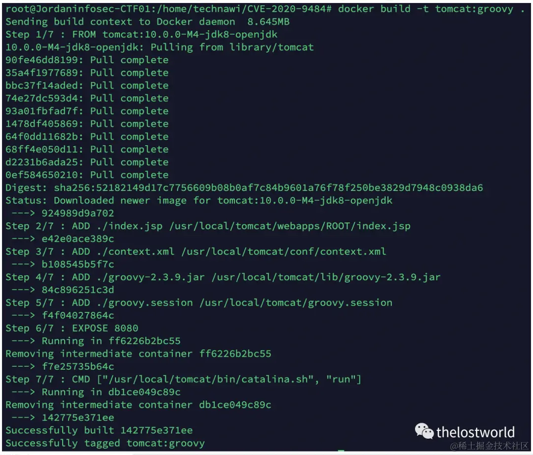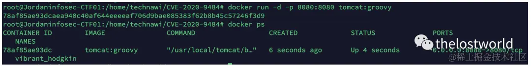 $ git clone https://github.com/masahiro331/CVE-2020-9484.git$ cd CVE-2020-9484$ docker build -t tomcat:groovy .$ docker run -d -p 8080:8080 tomcat:groovy