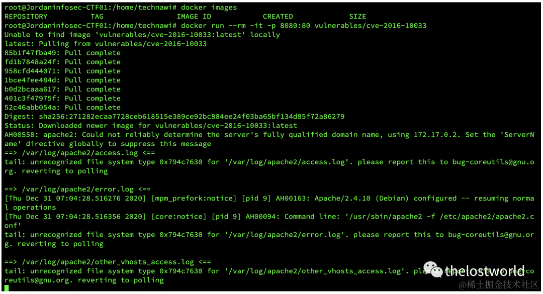 dockerrun --rm -it -p8080:80vulnerables/cve-2016-10033