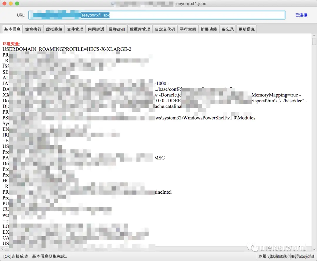 shell:http://127.0.0.1/seeyon/txf1.jspx 密码:leishi 冰蝎3连接(雷石安全exp加密版本)