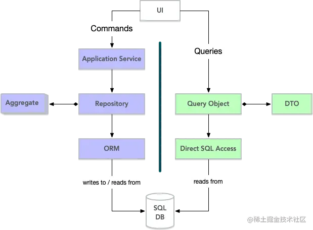 CQRS是一种模式,您可以完全将写入(命令)和读取(查询)操作彼此分离。详细内容不在本文讨论范围之内,但是就DDD而言,您应采用以下模式:
