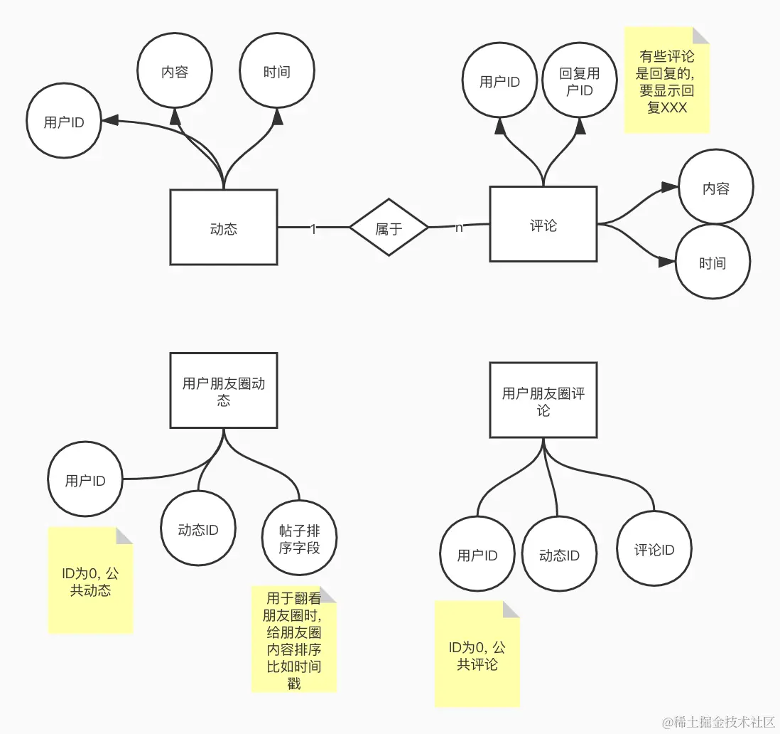 看了只有两条内容, 朋友圈动态, 朋友圈评论, 直接设计数据库.