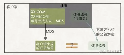 只能放到客户端了。意思是,客户端在拿到证书后,自己就有能力分辨证书是否被篡改了。如何才能有这个能力呢?