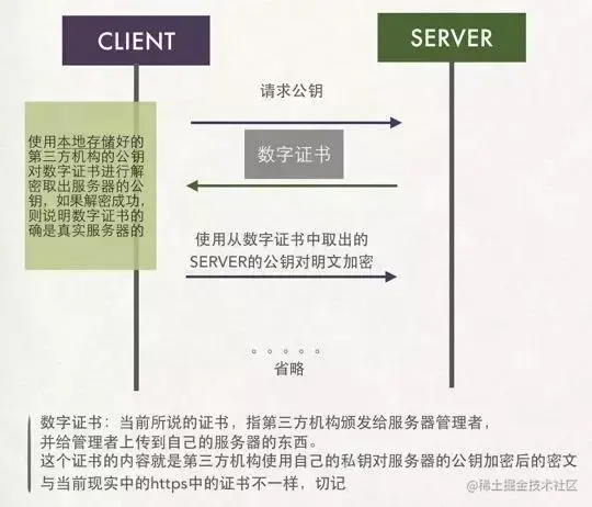 如果能解密,就说明这个公钥没有被中间人调包。因为如果中间人使用自己的私钥加密后的东西传给客户端,客户端是无法使用第三方的公钥进行解密的。