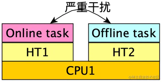 至此,还漏了另一个关键问题:超线程干扰。这也是混部场景的顽疾,业界也一直没有针对性的解决方案。