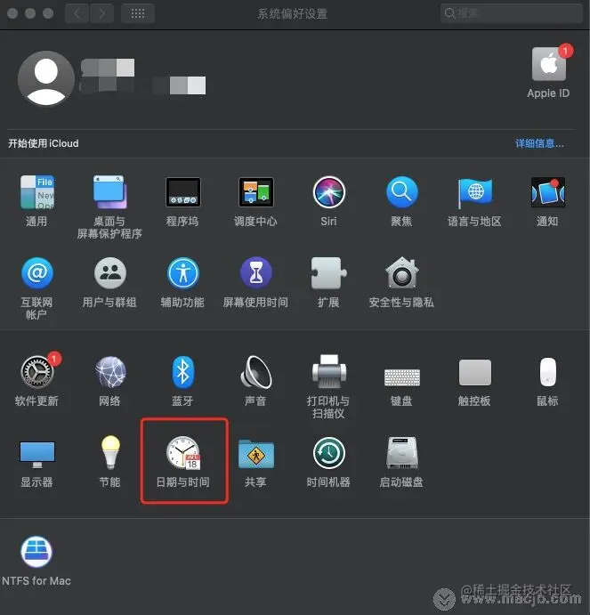 2.在系统偏好设置页面,打开【日期和时间】。