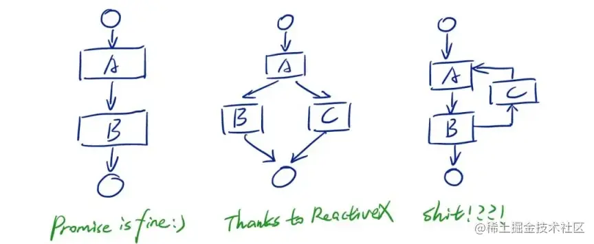 无论是反应式还是 Promise,说到底仍然没有摆脱手工构造 Continuation:开发者要把业务逻辑写成回调函数。对于线性的逻辑基本可以应付自如,但是如果逻辑复杂一点呢?(比如,考虑下包含循环的情况)