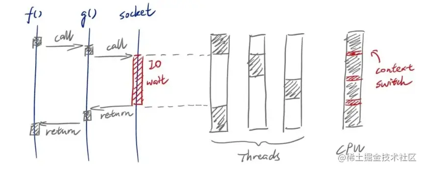 这两个原因驱使我们尽可能避免创建太多的线程 ,而异步编程的目的就是消除 IO wait 阻塞——绝大多数时候,这是我们创建一堆线程、甚至引入线程池的罪魁祸首。