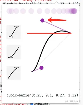 然后复制曲线面板下面的值 cubic-bezier(0.25, 0.1, 0.27, 1.32) 即可。