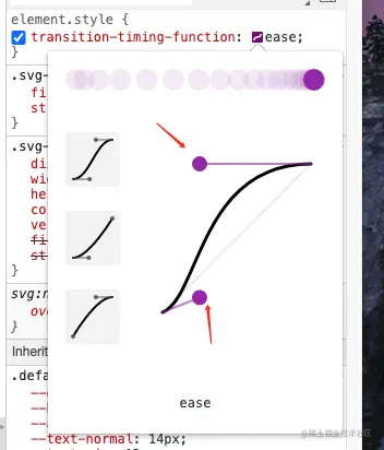 打开 chrome 的调试面板,随便找个 dom 设置 transition-timing-function: ease; 然后点击 ease 旁边的曲线小图标