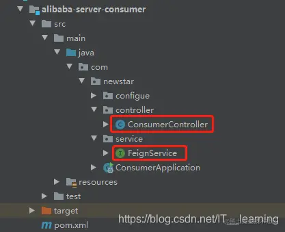 消费者 alibaba-server-consumer 微服务的文件结构