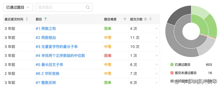 我总共刷了 1000 多道算法题目,光在 Leetcode 上就有 600 多道(简单、中等各占一半),还刷了一些其他平台或书籍上应对面试的题目,比如《剑指 offer》、牛客、PAT 等,也都不错。