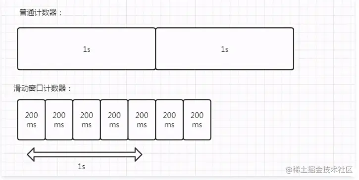 其实换个角度想,我们普通的计数器其实就是窗口数量为1的滑动窗口计数器,只要我们分的窗口越多,我们使用计数器方案的时候统计就会越精确,但是相对来说维护的窗口的成本就会增加,等会我们介绍sentinel的时候会详细介绍他是怎么实现滑动窗口计数的。