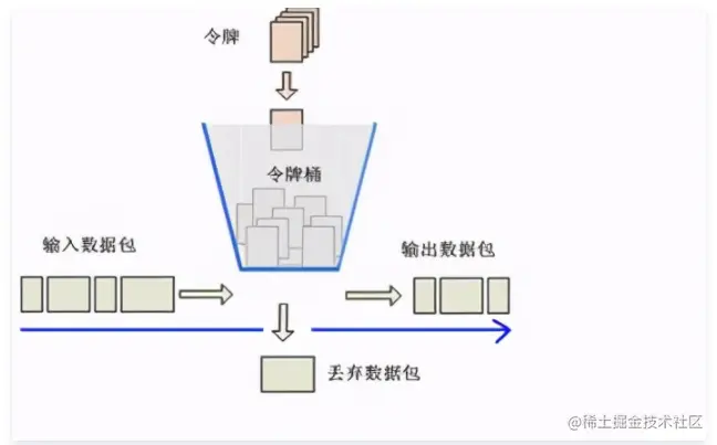 为了解决突发流量情况,我们可以使用令牌桶算法,如下图所示: