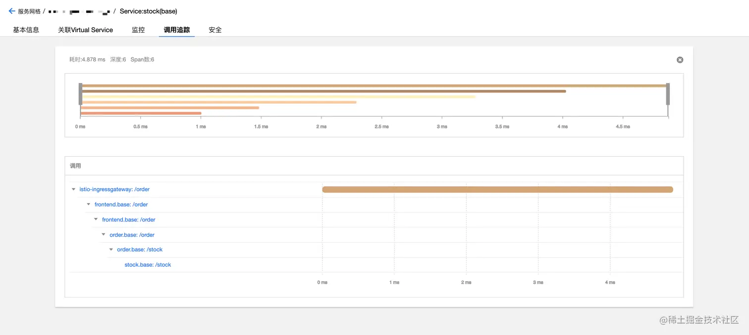 - 有访问请求后,查看工作负载(frontend,frontend-canary)监控,两个版本均有流量,比例大致 1:1