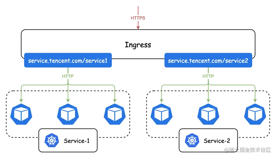 Kubernetes 提供了 Ingress API [1] 用于暴露集群内的 HTTP 服务,Ingress 支持基于 Host 和 Path 将请求路由到不同 Service。为了让 Ingress 工作,集群必须有一个正在运行的 Ingress 控制器(e.g. Nginx Ingress Controller)。原生 Ingress 语法提供简单的基于 Host,Path 路由,以及配置 TLS 的能力。