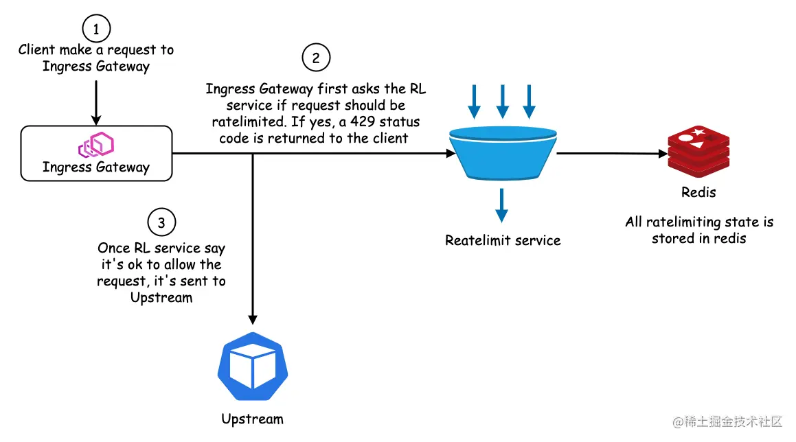 为了使用 Istio Ingress Gateway 的限流功能,首先需要安装 Ratelimit service,可以自行实现或直接使用社区的 ratelimit [6],然后使用 Envoyfilter 配置限流规则,具体配置方法可参考官方文档[7]。