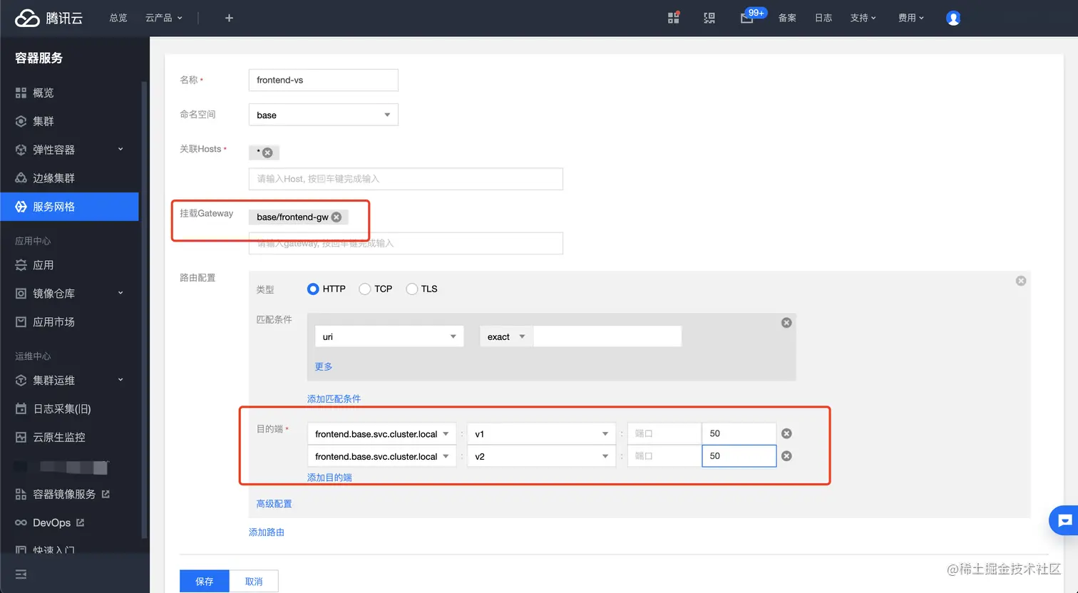 下面将使用腾讯云服务网格 TCM 控制台演示 Service Mesh Ingress 做多 Kubernetes 集群环境下的灰度发布和容灾。