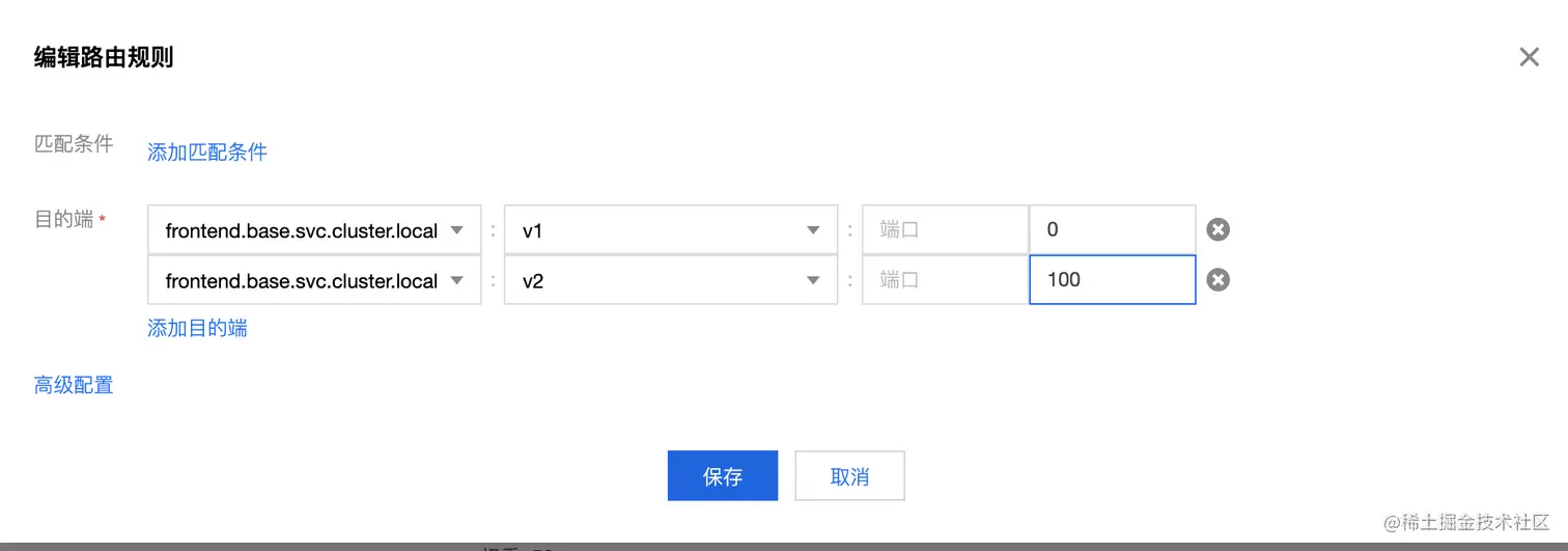 地域加权负载均衡可以将用户定义的一定百分比的流量分发到某些地域,例如我们可以使用如下配置分发流量: