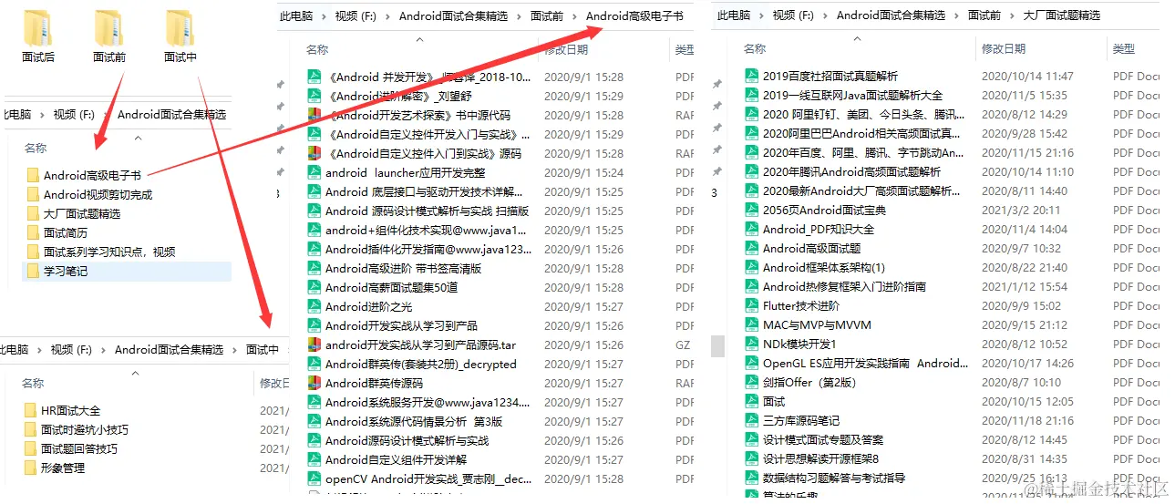 如果不方便查看,我已经整理成了一份PDF包含Android入门,基础—高级的全部系列知识点,还有新技术学习笔记。