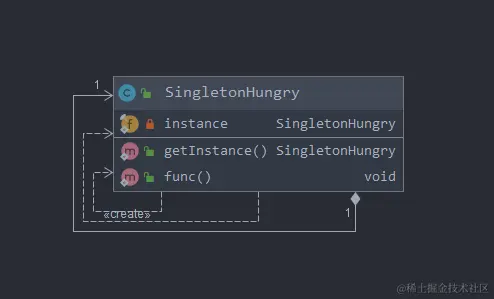 private static final SingletonHungry instance = new SingletonHungry();