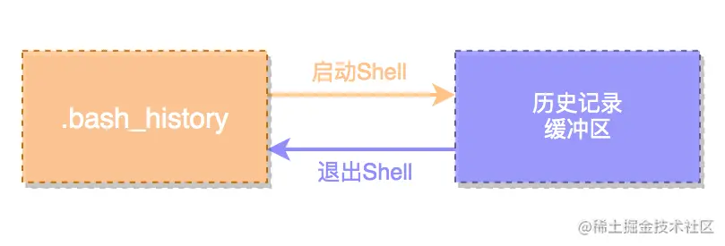 当 Linux 系统启动一个 Shell 时,Shell 会从 .bash_history 文件中,读取历史记录,存储在相应内存的缓冲区中。