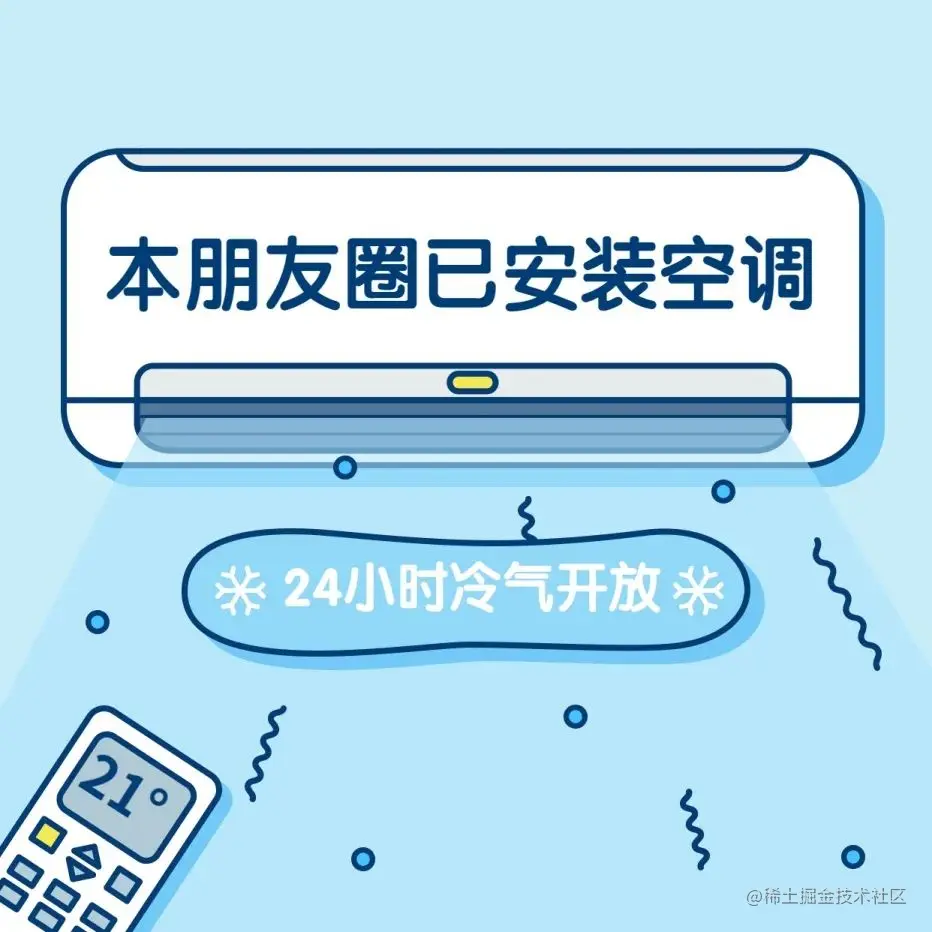 前几年天气热的时候经常见到朋友圈有些人会发空调的图片,类似下面这张图,只是静态图,没有交互,所以也没有很多人会去关注。