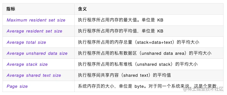 使用 GNU time 命令,直接使用绝对路径即可,我们可以看到输出信息更多了,不过格式有点丑,后边会讲如何自定义格式。