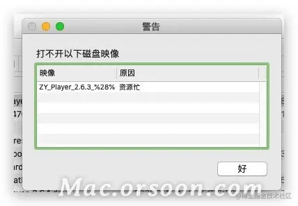 Mac系统打开dmg文件出现“资源忙”的解决方法 Mac迪迪卫 2021-05-12 302 阅读1分钟 有时候我们打开dmg安装包的时候会出现如下情况,这种可能是一些进程卡了,或者是自己打开的时候点击了跳过,偶尔会出现这样。 这个时候需要打开“活动监视器”退出几个“disk进程”就行了。首先在电脑屏幕右上角状态栏 点击“搜索按钮 ”(🔍放大镜图标),搜索 “活动监视器”然后回车打开 全部退出之后,你就可以发现 之前的dmg文件可以打开了。不会再出现资源忙了。