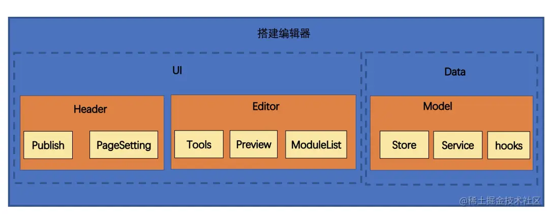 按照搭建流程中使用的核心能力,我们将搭建编辑器设计成UI和Data两部分。