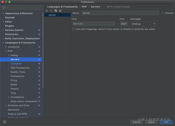 Preferences | Languages & Frameworks | PHP | Servers