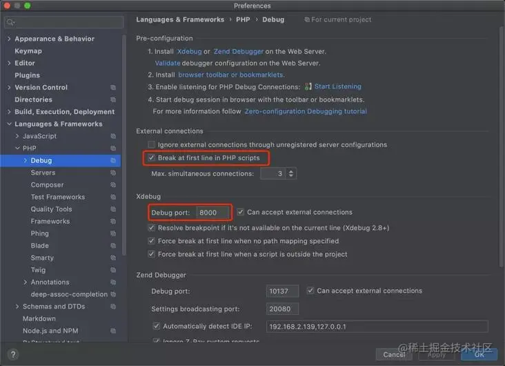 Preferences | Languages & Frameworks | PHP | Debug