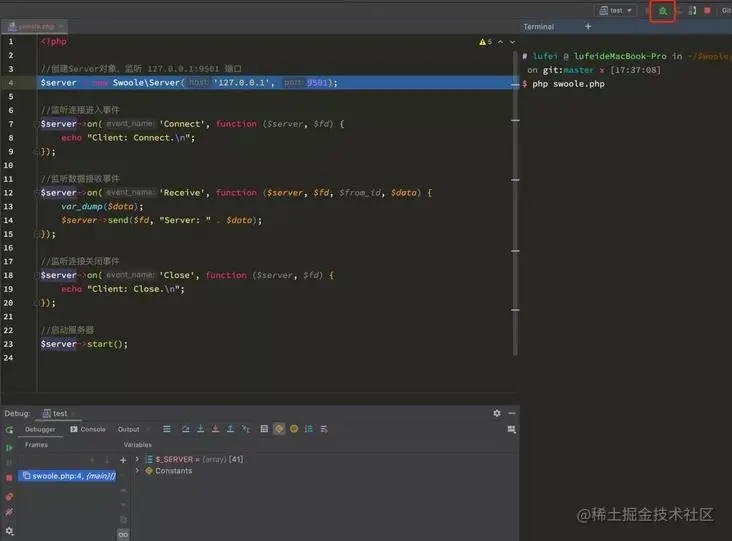 这里放一张调试 Hyperf 的截图