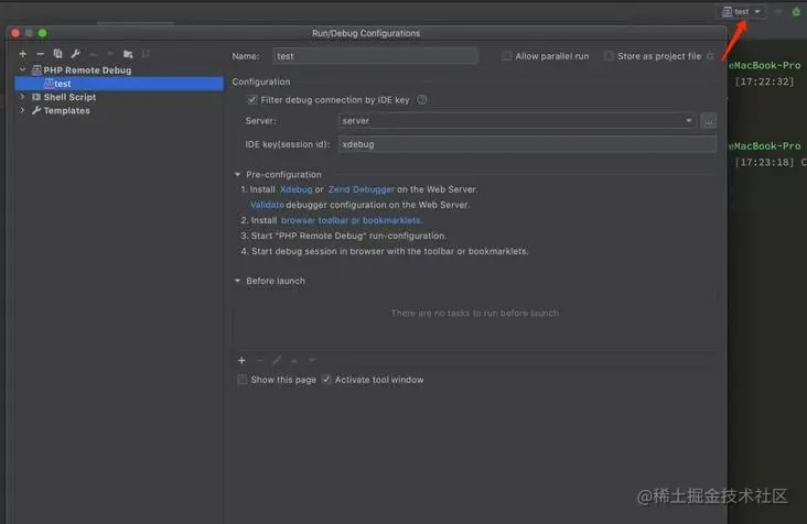 server 选择我们刚才创建的 server,IDE key 就填我们 php.ini 中配置的xdebug