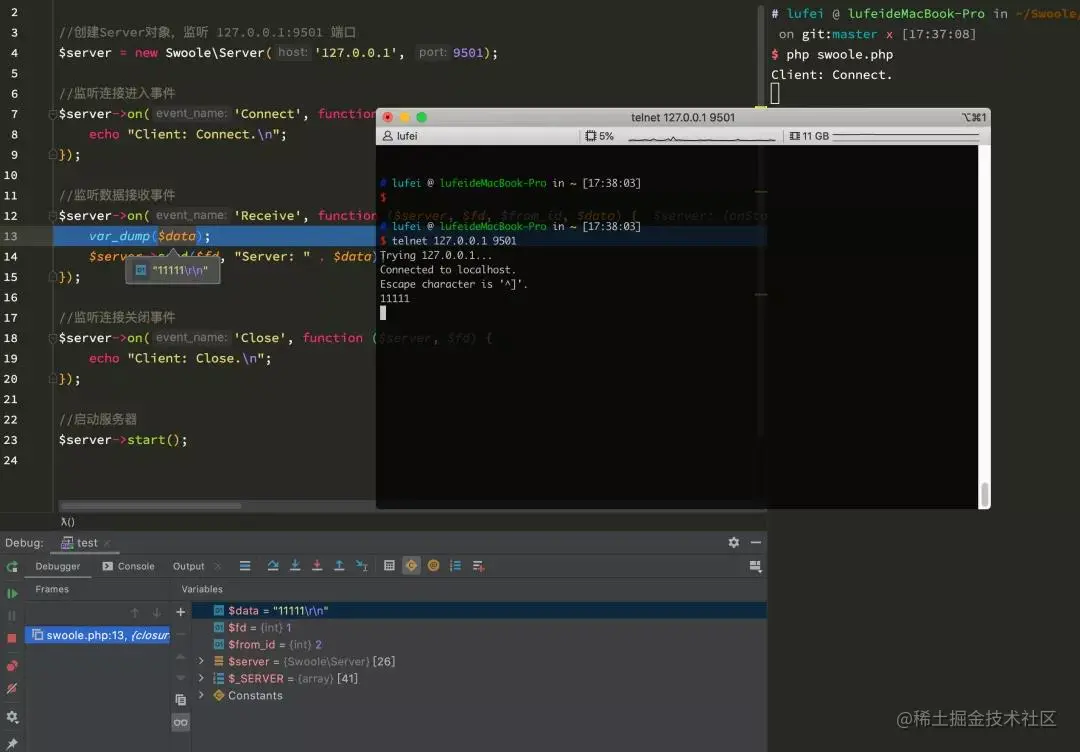 $server = new Swoole\Server('127.0.0.1', 9501);