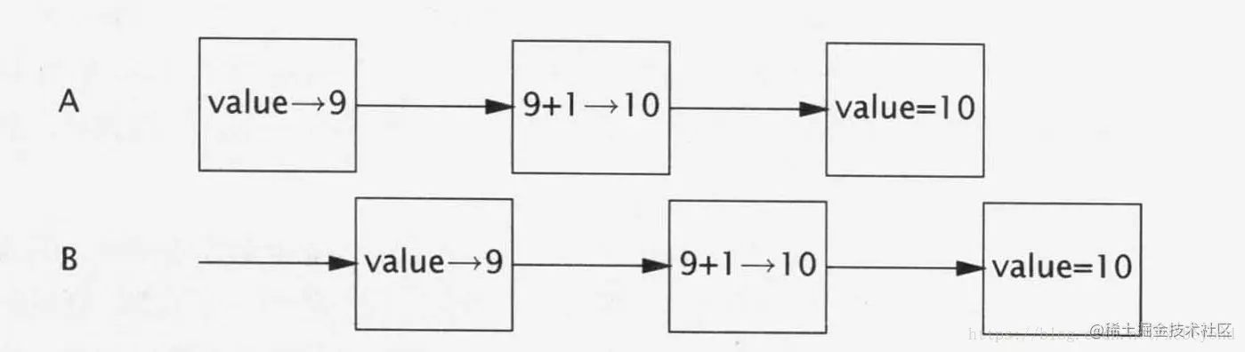 假定有两个操作A和B,如果从执行A的线程来看,当另一个线程执行B时,要么将B完全执行完,要么完全不执行B,那么A和B对彼此来说是原子的。原子操作是指:对于访问同一个状态的所有操作(包括该操作本身)来说,这个操作是一个以原子方式执行的操作。