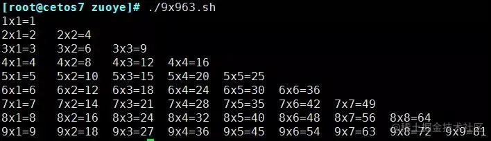 let c=$a*$b ;echo -e "${a}x${b}=$c\t\c"