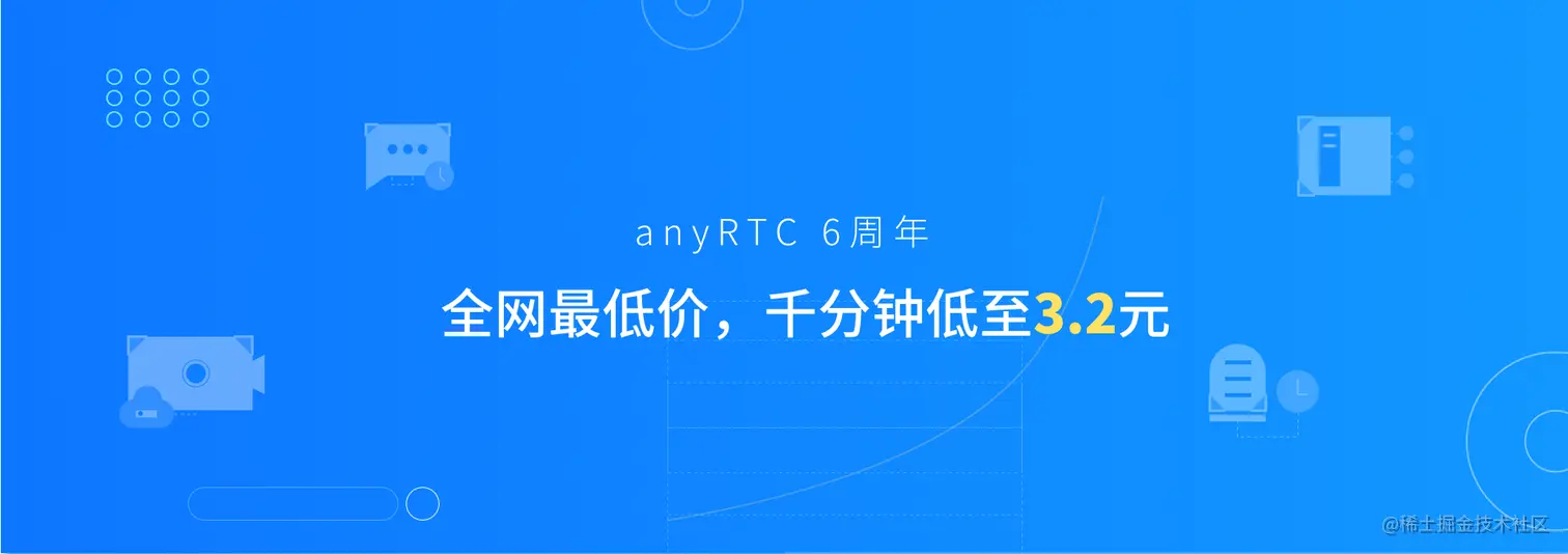 最近的几年音视频行业得到了快速发展,由于疫情的蔓延使得线上教育和在线音视频会议等产品受到了广泛的关注与应用,更加加快了音视频行业的发展与落地。让广大的用户接受并且认可了音视频的相关产品,也使得更多的公司开始投入到在线教育,娱乐社交等产品的研发中。但是音视频相关产品的市场价格却使得很多公司望而却步, anyRTC 一直希望能够大力推广音视频行业的发展,希望能够让小公司无压力启动项目,让大公司减负,用最低的价格享受最优质的音视频服务。所以 anyRTC 在公司成立 6 周年之际,把音视频的价格做到全行业最低。