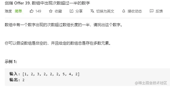 题目中我们需要查找的数字超过数组长度的一半,也就是说,要查找的数字target的个数会超过其他数字个数。