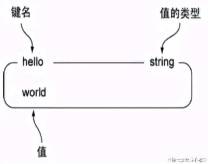 下图是一个String类型的实例,其中键为hello,值为world