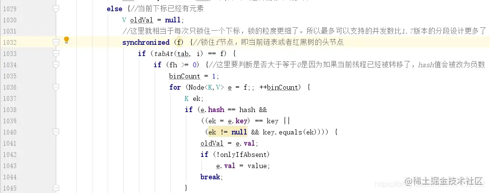 如何实现线程的安全性?加锁。但是这个锁应该怎么加呢?在 HashTable 中,是直接在 put 和 get 方法上加上了 synchronized,理论上来说 ConcurrentHashMap 也可以这么做,但是这么做锁的粒度太大,会非常影响并发性能,所以在 ConcurrentHashMap 中并没有采用这么直接简单粗暴的方法,其内部采用了非常精妙的设计,大大减少了锁的竞争,提升了并发性能。